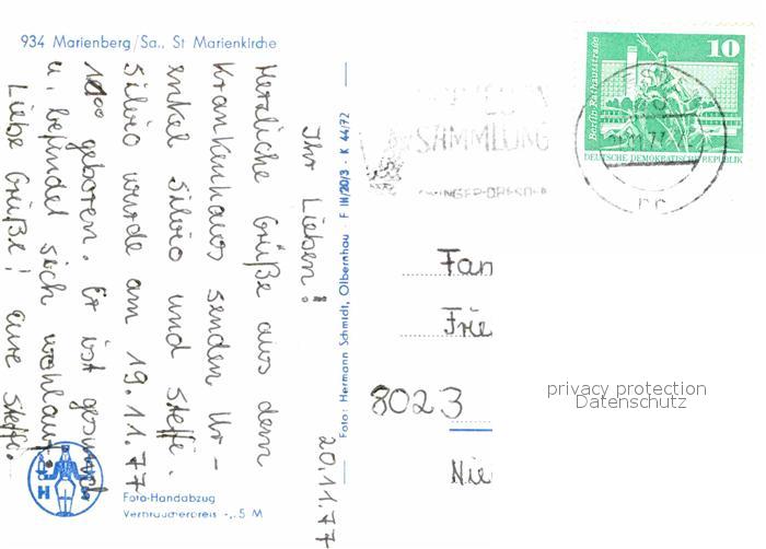 72636032 alte Postkarte Marienberg Erzgebirge St Marienkirche Innenansicht Altar postalisch gelaufen Erhaltung siehe scans [FriedD77] KatCode: 11110014181260