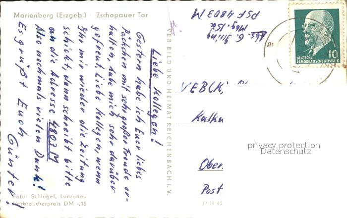 72386010 alte Postkarte Marienberg Erzgebirge Zschopauer Tor postalisch gelaufen Erhaltung siehe scans KatCode: 11110014181260