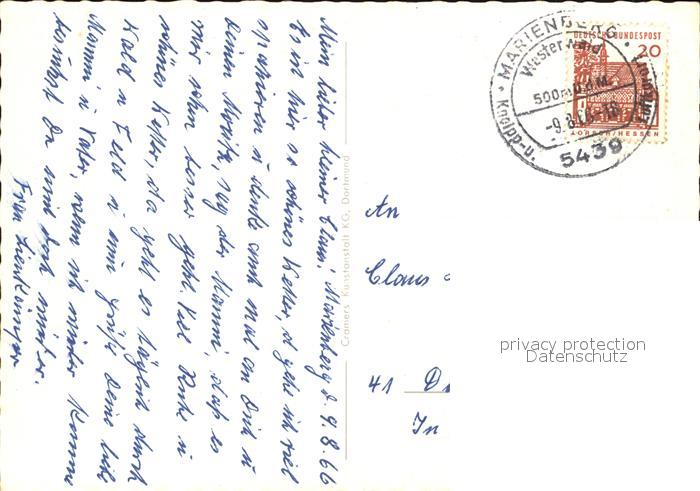 alte Postkarte Marienberg Westerwald Bad Fliegeraufnahme Kurpark Bismarckstrasse Grosser Wolfstein postalisch gelaufen Erhaltung siehe scans