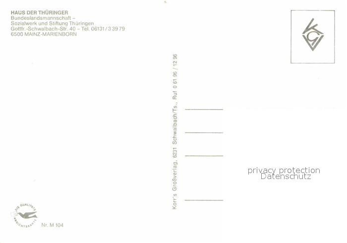 72663209 Marienborn Mainz Haus der Thueringer postalisch nicht gelaufen Erhaltung siehe scans [NatalD47] KatCode: 11110007315000