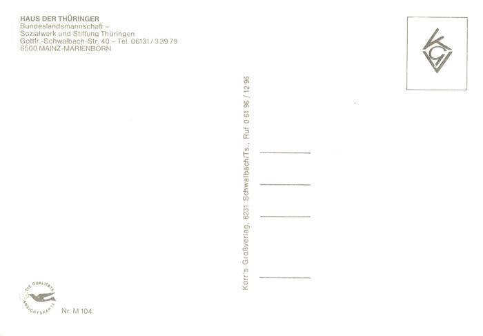 73919501 Marienborn Mainz Haus der Thueringer Gastraum Konferenzsaal postalisch nicht gelaufen Erhaltung siehe scans [FriedD77] KatCode: 11110007315000