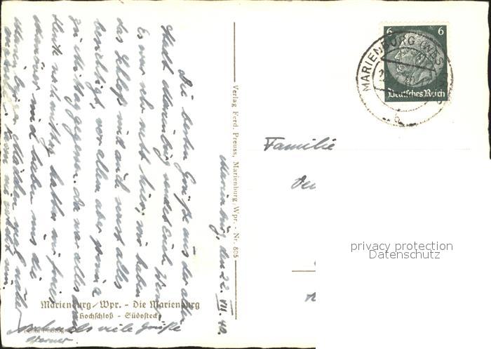 old postcard Marienburg Westpreussen Hochschloss postalisch gelaufen Erhaltung siehe scans