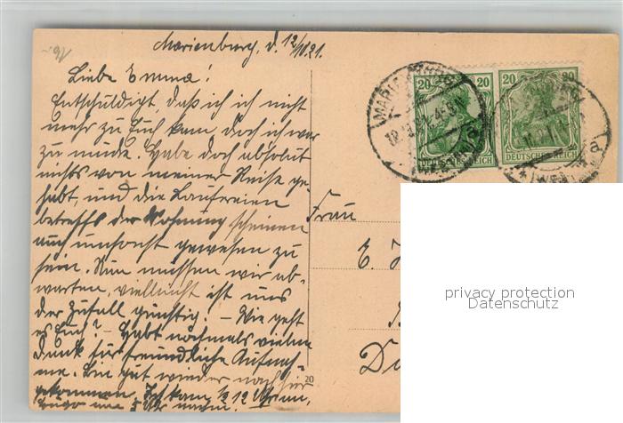 old postcard Marienburg Westpreussen Schloss postalisch gelaufen Erhaltung siehe scans [KathaD81]