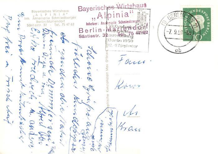 73908610 alte Postkarte Mariendorf Berlin Bayerisches Wirtshaus Alpinia Gastraeume postalisch gelaufen Erhaltung siehe scans [WerneD78] KatCode: 11110011000000
