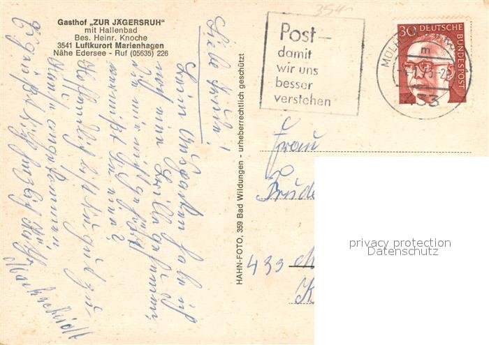 73742411 alte Postkarte Marienhagen Korbach Gasthof Zur Jaegersruh postalisch gelaufen Erhaltung siehe scans [WerneD78] KatCode: 11110006635019