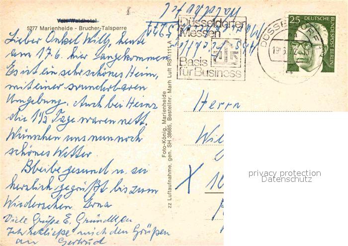 72785821 alte Postkarte Marienheide Brucher Talsperre Fliegeraufnahme postalisch gelaufen Erhaltung siehe scans [WerneD78] KatCode: 11110005374024