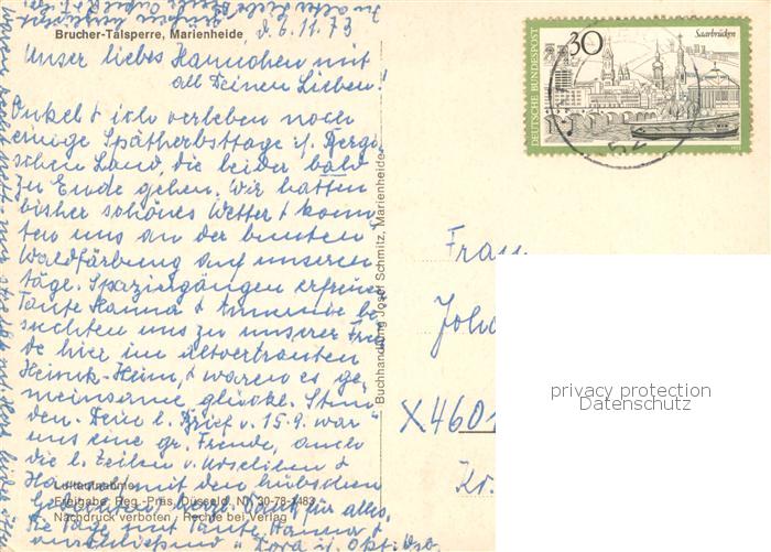 73761891 alte Postkarte Marienheide Brucher Talsperre Fliegeraufnahme postalisch gelaufen Erhaltung siehe scans [FriedD77] KatCode: 11110005374024