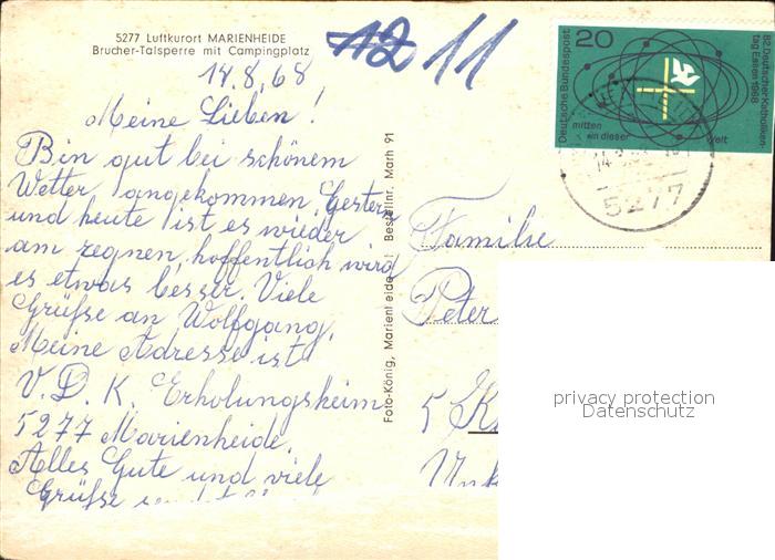 72582269 alte Postkarte Marienheide Brucher Talsperre mit Campingplatz postalisch gelaufen Erhaltung siehe scans [WerneD78] KatCode: 11110005374024