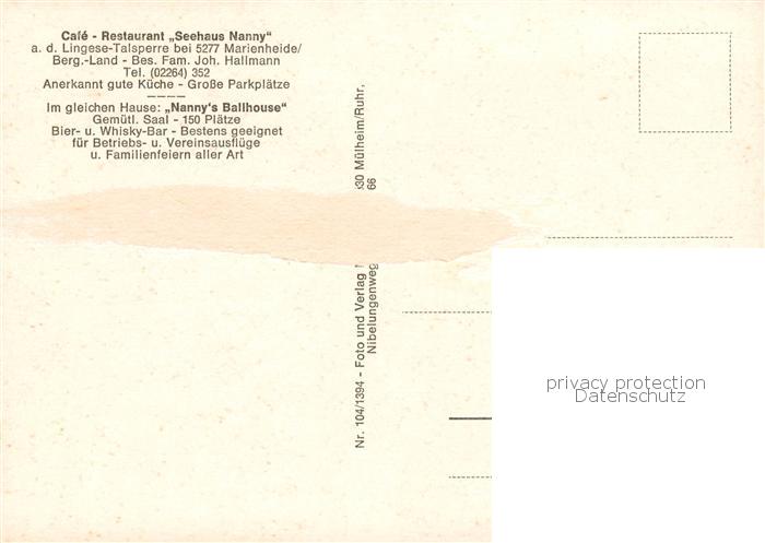 73873608 Marienheide Cafe Restaurant Seehaus Nanny Gastraeume postalisch nicht gelaufen Erhaltung siehe scans [WerneD78] KatCode: 11110005374024