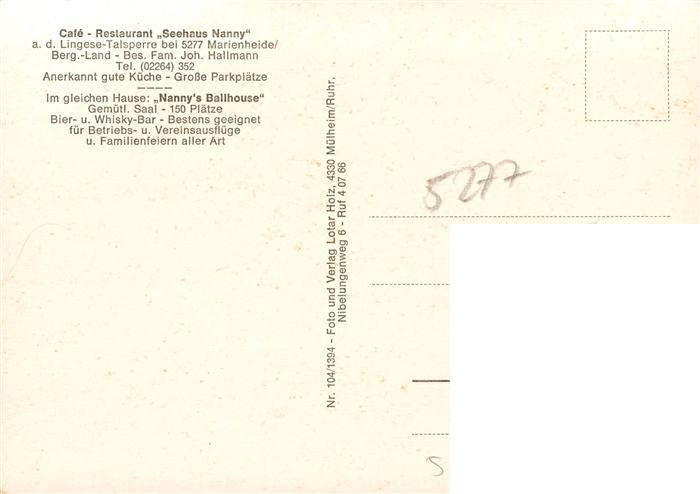 73904741 Marienheide Café Restaurant Seehaus Nanny postalisch nicht gelaufen Erhaltung siehe scans [FriedD77] KatCode: 11110005374024