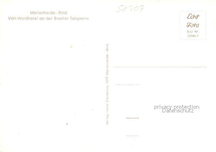 73864019 Marienheide VdH Waldhotel an der Brucher Talsperre postalisch nicht gelaufen Erhaltung siehe scans [WerneD78] KatCode: 11110005374024