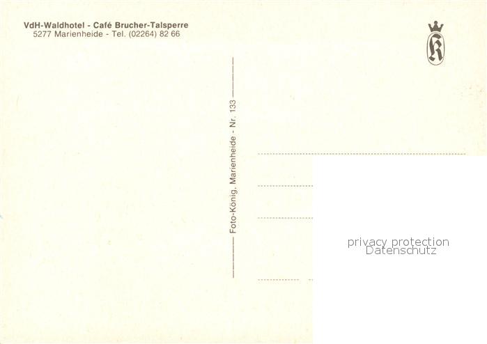 73323671 Marienheide VdH Waldhotel Cafe Brucher Talsperre postalisch nicht gelaufen Erhaltung siehe scans [FriedD77] KatCode: 11110005374024
