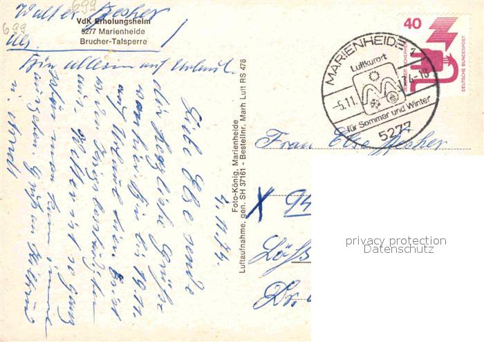 72753939 alte Postkarte Marienheide VdK Erholungsheim Brucher Talsperre Fliegeraufnahme postalisch gelaufen Erhaltung siehe scans [FriedD77] KatCode: 11110005374024