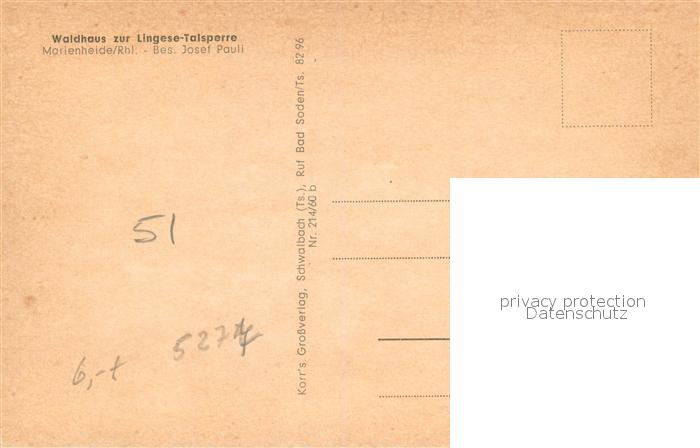 73641305 Marienheide Waldhaus zur Lingese Talsperre postalisch nicht gelaufen Erhaltung siehe scans [FriedD77] KatCode: 11110005374024