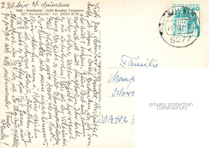 73106572 alte Postkarte Marienheide Waldhofel Cafe Brucher Talsperre postalisch gelaufen Erhaltung siehe scans [KathaD81] KatCode: 11110005374024