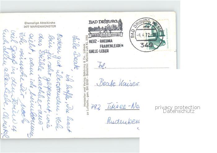 72359756 alte Postkarte Marienmuenster Abteikirche Fliegeraufnahme postalisch gelaufen Erhaltung siehe scans KatCode: 11110005762024