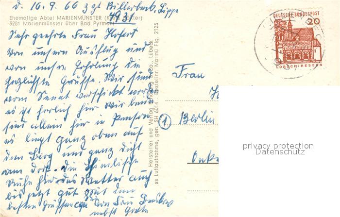 73646912 alte Postkarte Marienmuenster Ehem Abtei Marienmuenster Fliegeraufnahme postalisch gelaufen Erhaltung siehe scans [WerneD78] KatCode: 11110005762024