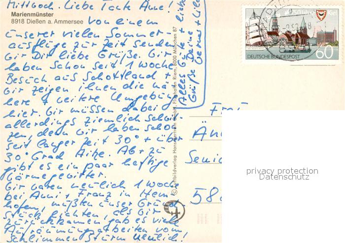 73683855 alte Postkarte Marienmuenster Fliegeraufnahme Diessen am Ammersee postalisch gelaufen Erhaltung siehe scans [LiesaD40] KatCode: 11110005762024