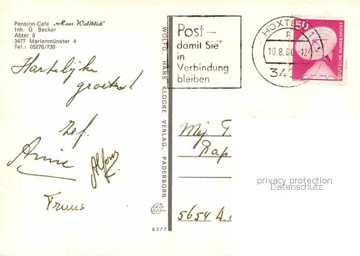 72837550 alte Postkarte Marienmuenster Pension-Cafe Haus Waldblick Abtei-Kirche postalisch gelaufen Erhaltung siehe scans [PaolaD17] KatCode: 11110005762024