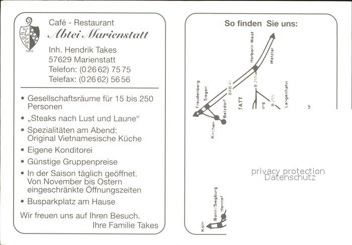 72411733 Marienstatt Westerwald Cafe Restaurant Abtei Marienstatt Fliegeraufnahme Speisesaal postalisch nicht gelaufen Werbekarte (keine Postkarte) Erhaltung siehe scans KatCode: 11110007143299