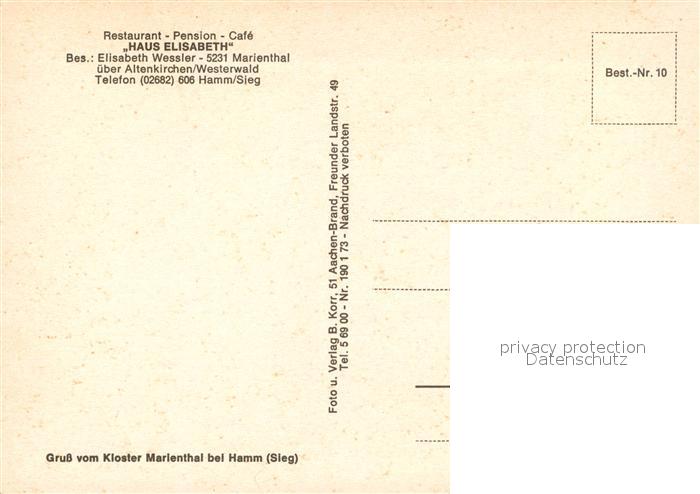 73073094 Marienthal Ahr Restaurant Pension Haus Elisabeth postalisch nicht gelaufen Erhaltung siehe scans [KathaD81] KatCode: 11110007131007