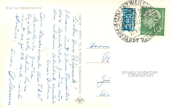 73283769 alte Postkarte Marienthal Ahr postalisch gelaufen Erhaltung siehe scans [NatalD47] KatCode: 11110007131007