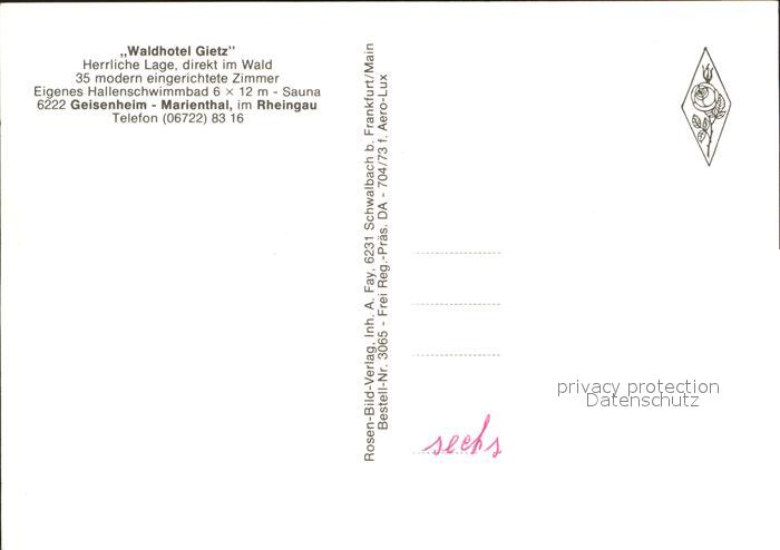 72022095 Marienthal Geisenheim Waldhotel Gietz Fliegeraufnahme postalisch nicht gelaufen Erhaltung siehe scans KatCode: 11110006439004