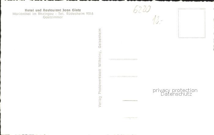 72095849 Marienthal Rheingau Hotel Restaurant Jean Gletz postalisch nicht gelaufen Erhaltung siehe scans KatCode: 11110006439013