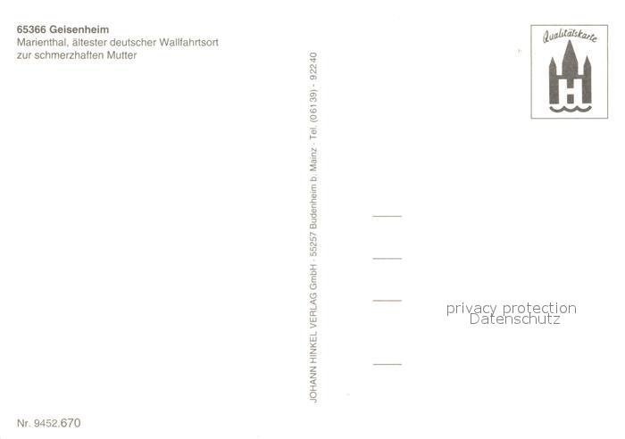 73251280 Marienthal Rheingau Kloster Wallfahrtskirche zur schmerzhaften Mutter postalisch nicht gelaufen Erhaltung siehe scans [KathaD81] KatCode: 11110006439013