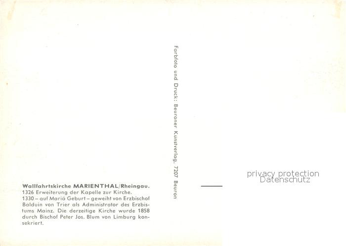 73207167 Marienthal Rheingau Wallfahrtskirche postalisch nicht gelaufen Erhaltung siehe scans [KathaD81] KatCode: 11110006439013
