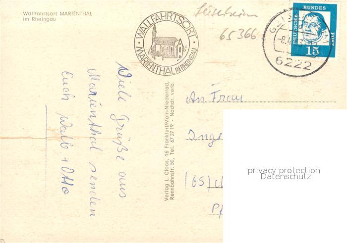 73540935 alte Postkarte Marienthal Rheingau Wallfahrtskirche Fliegeraufnahme postalisch gelaufen Erhaltung siehe scans [WerneD78] KatCode: 11110006439013