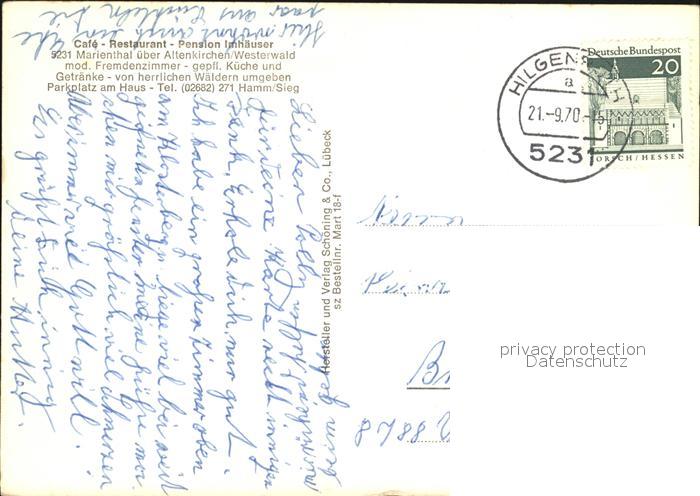 72524297 alte Postkarte Marienthal Westerwald Cafe Restaurant Pension Imhaeuser postalisch gelaufen Erhaltung siehe scans KatCode: 11110007132102