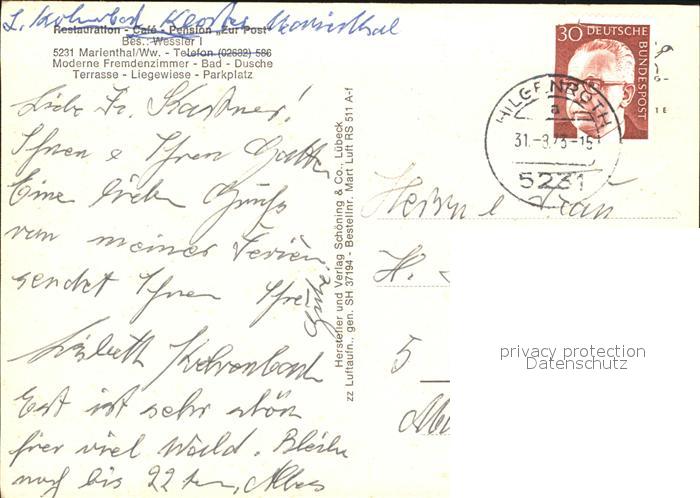 72548311 alte Postkarte Marienthal Westerwald Fliegeraufnahme Restaurant Pension Zur Post postalisch gelaufen Erhaltung siehe scans [LiesaD40 kv019box] KatCode: 11110007132102
