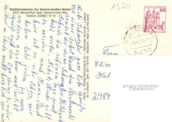 73054404 alte Postkarte Marienthal Westerwald Fliegeraufnahme Wallfahrtskirche Zur Schmerzhaften Mutter postalisch gelaufen Erhaltung siehe scans [KathaD81] KatCode: 11110007132102