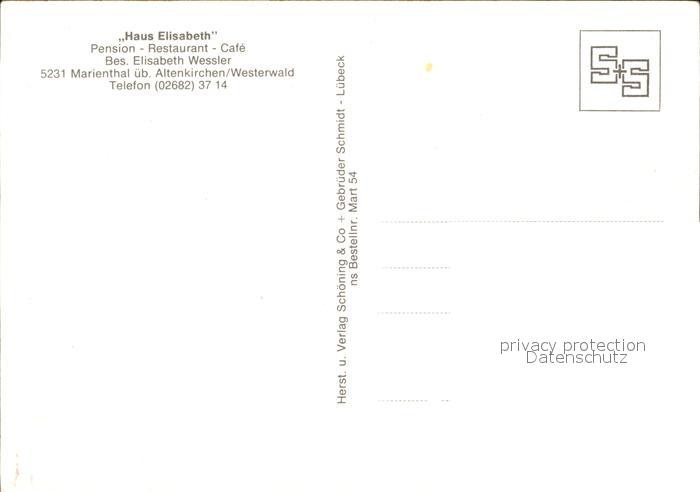 72424967 Marienthal Westerwald Haus Elisabeth Pension Restaurant postalisch nicht gelaufen Erhaltung siehe scans KatCode: 11110007132102