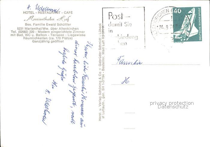 71984162 alte Postkarte Marienthal Westerwald Hotel Restaurant Cafe Marienthaler Hof postalisch gelaufen Erhaltung siehe scans KatCode: 11110007132102