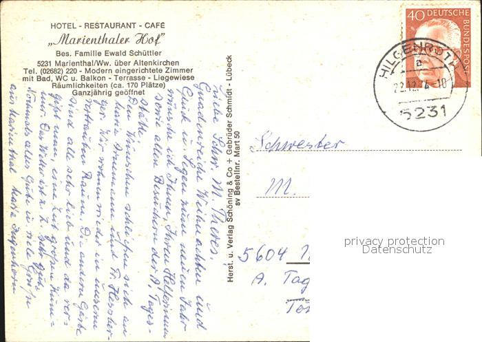 72524296 alte Postkarte Marienthal Westerwald Hotel Restaurant Cafe Marienthaler Hof postalisch gelaufen Erhaltung siehe scans KatCode: 11110007132102