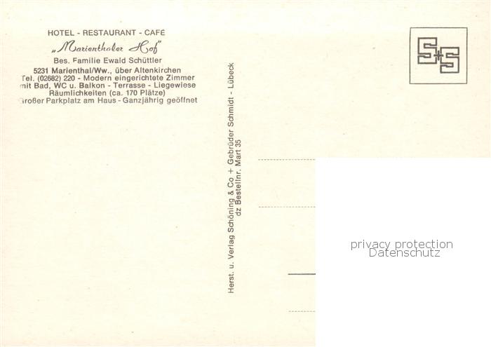 73844671 Marienthal Westerwald Hotel Restaurant Cafe postalisch nicht gelaufen Erhaltung siehe scans [WerneD78] KatCode: 11110007132102