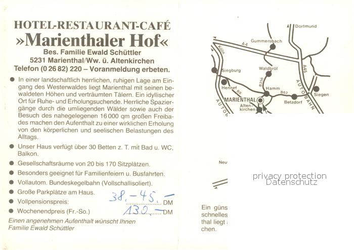73117087 Marienthal Westerwald Hotel Restaurant Marienthaler Hof postalisch nicht gelaufen Werbekarte (keine Postkarte) Erhaltung siehe scans [KathaD81] KatCode: 11110007132102