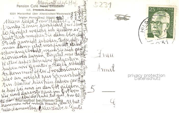 73755148 alte Postkarte Marienthal Westerwald Pension-Cafe Haus Elisabeth postalisch gelaufen Erhaltung siehe scans [LiesaD40] KatCode: 11110007132102