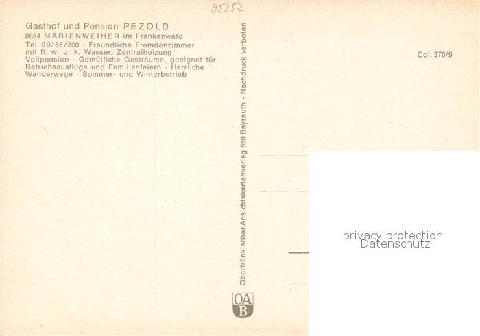 73648739 Marienweiher Gasthof Pension Pezold Terrasse Gaststube Panorama postalisch nicht gelaufen Erhaltung siehe scans [WerneD78] KatCode: 11110009477138
