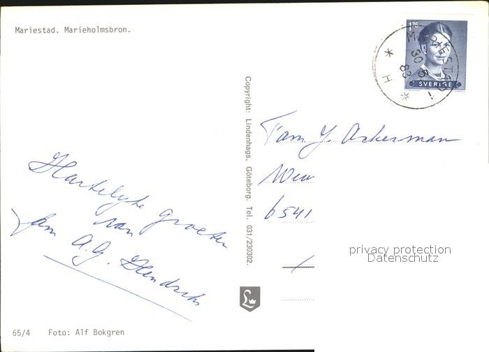 old postcard Mariestad Marieholmsbron postalisch gelaufen Erhaltung siehe scans