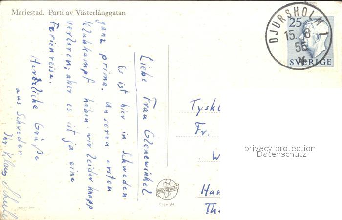 old postcard Mariestad Parti av Vaesterlanggatan postalisch gelaufen Erhaltung siehe scans