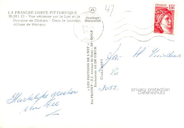 13322856 carte postale Marigny Jura Vue Aerienne Domaine de Chalain postalisch gelaufen Erhaltung siehe scans [PaolaD17] KatCode: 11170039239313