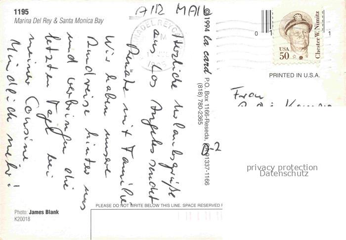 74095330 old postcard Marina Del Rey Santa Monica California USA Yachthafen Air view postalisch gelaufen Erhaltung siehe scans [WerneD78] KatCode: 14140050000000