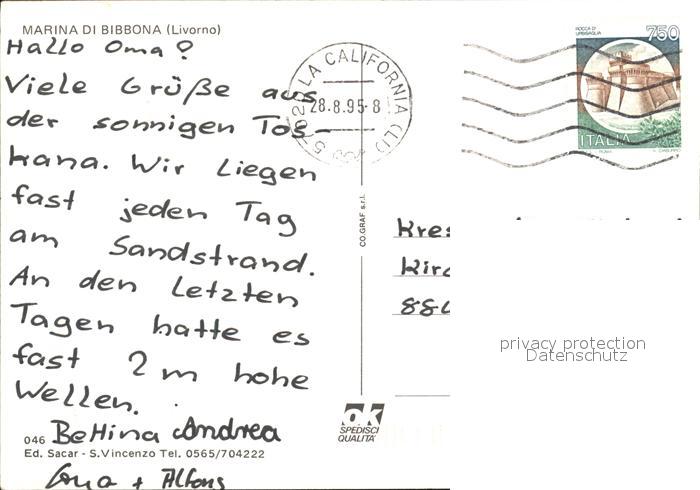old postcard Marina di Bibbona Spiaggia Strand Segeln Fliegeraufnahme postalisch gelaufen Erhaltung siehe scans