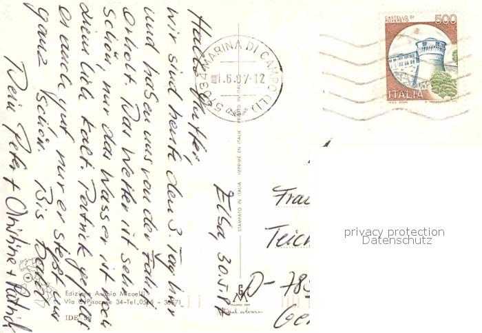 old postcard Marina di Campo Campingplatz Hafen postalisch gelaufen Erhaltung siehe scans [WerneD78]