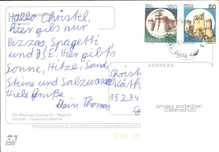 old postcard Marina di Casalvelino Salerno Panorama Windsurfing Hafenpartie postalisch gelaufen Erhaltung siehe scans