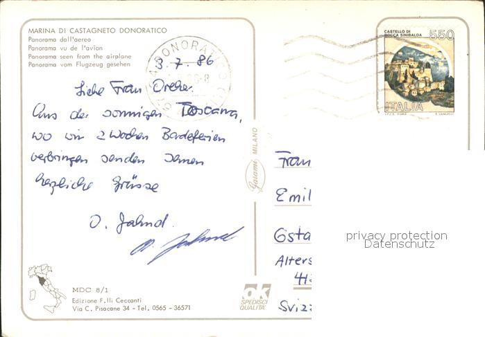 old postcard Marina di Castagneto Fliegeraufnahme postalisch gelaufen Erhaltung siehe scans