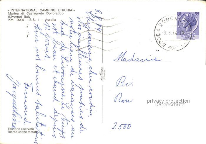 old postcard Marina di Castagneto International Camping Etruria postalisch gelaufen Erhaltung siehe scans